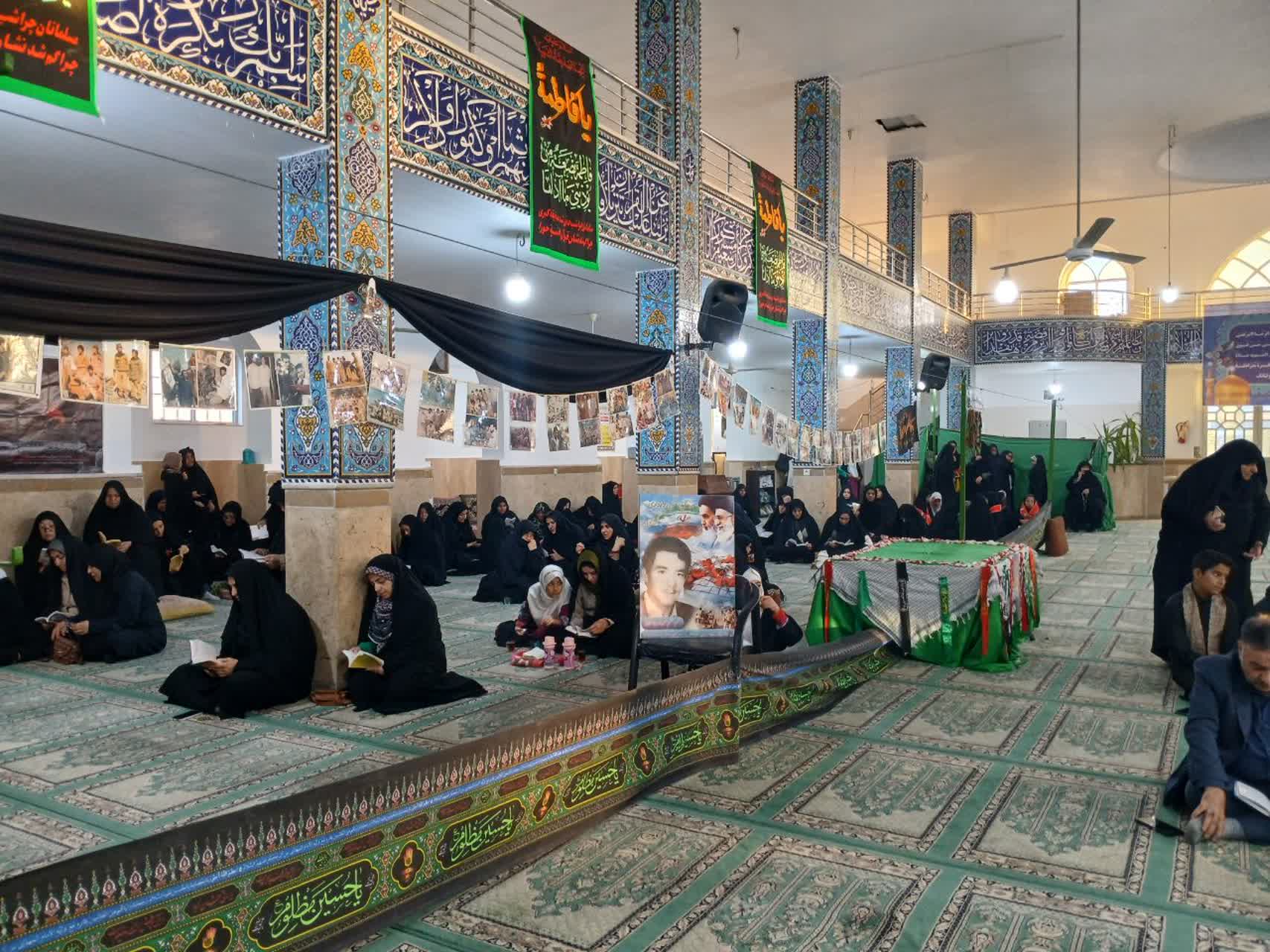 مراسم پرفیض دعای ندبه، عزاداری در مسجد حضرت ابوالفضل علیه السلام و وداع دانش آموزان دبستان دخترانه الهام دشتی با شهید از برنامه های این مراسم بود.
